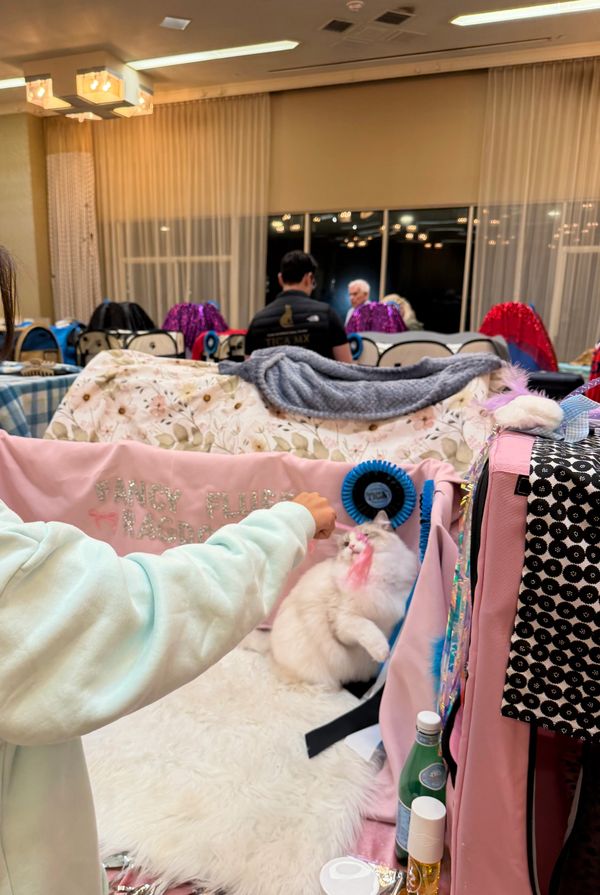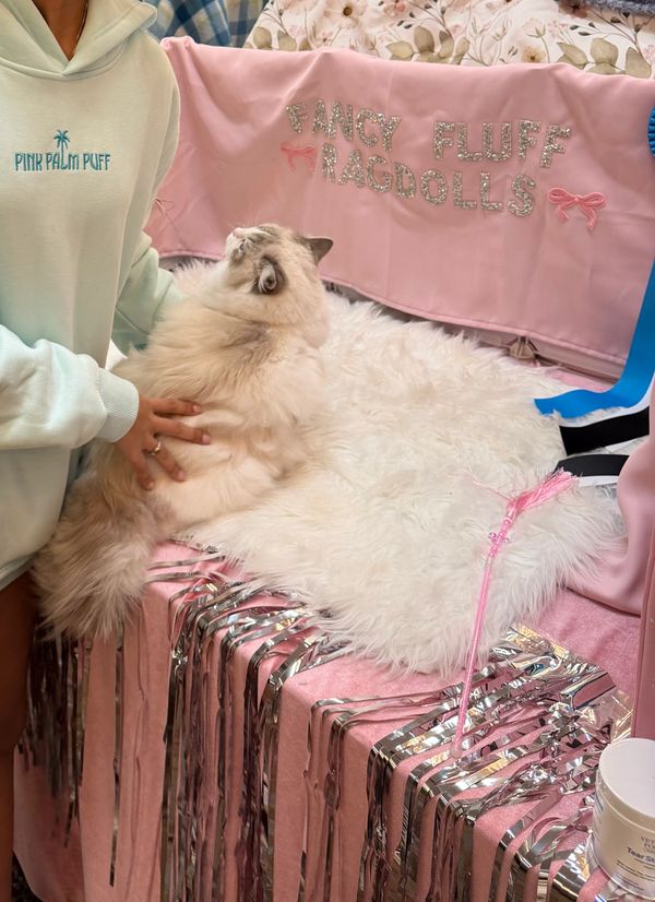 TICA judging of one of our Fancyfluff Ragdolls from champion bloodlines